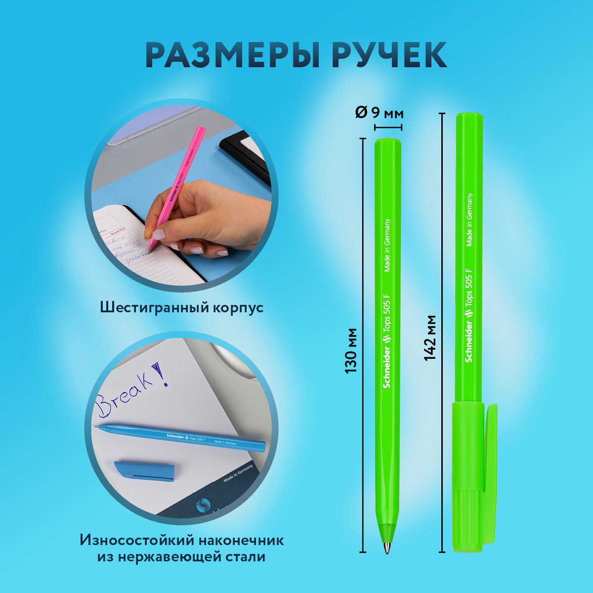 Отзывы на Набор шариковых ручек Schneider "Tops 505 F Candy" 4шт, синие, 0,8мм, корпус неон ассорти, блистер