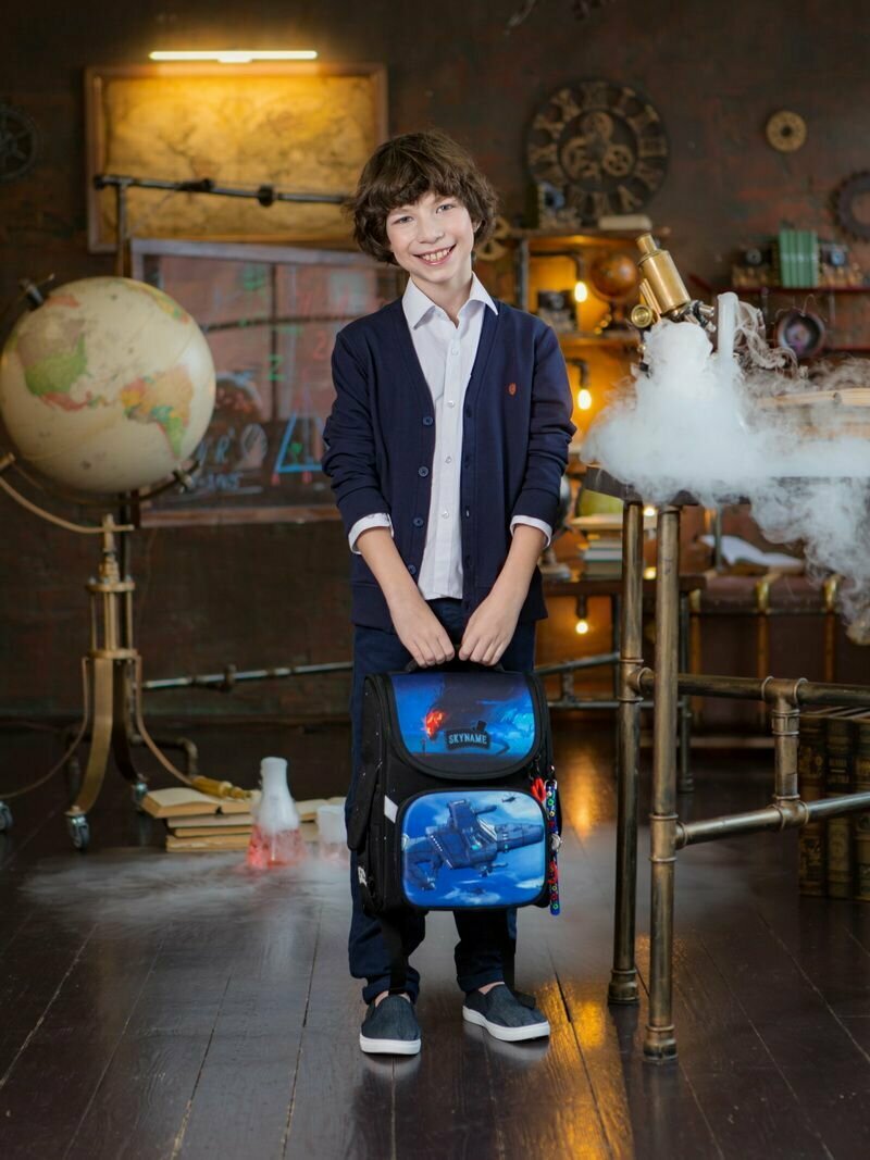 Ранец школьный для мальчика 15 л для начальной школы, каркасный с анатомической спинкой SkyName (СкайНейм), с часами информация: