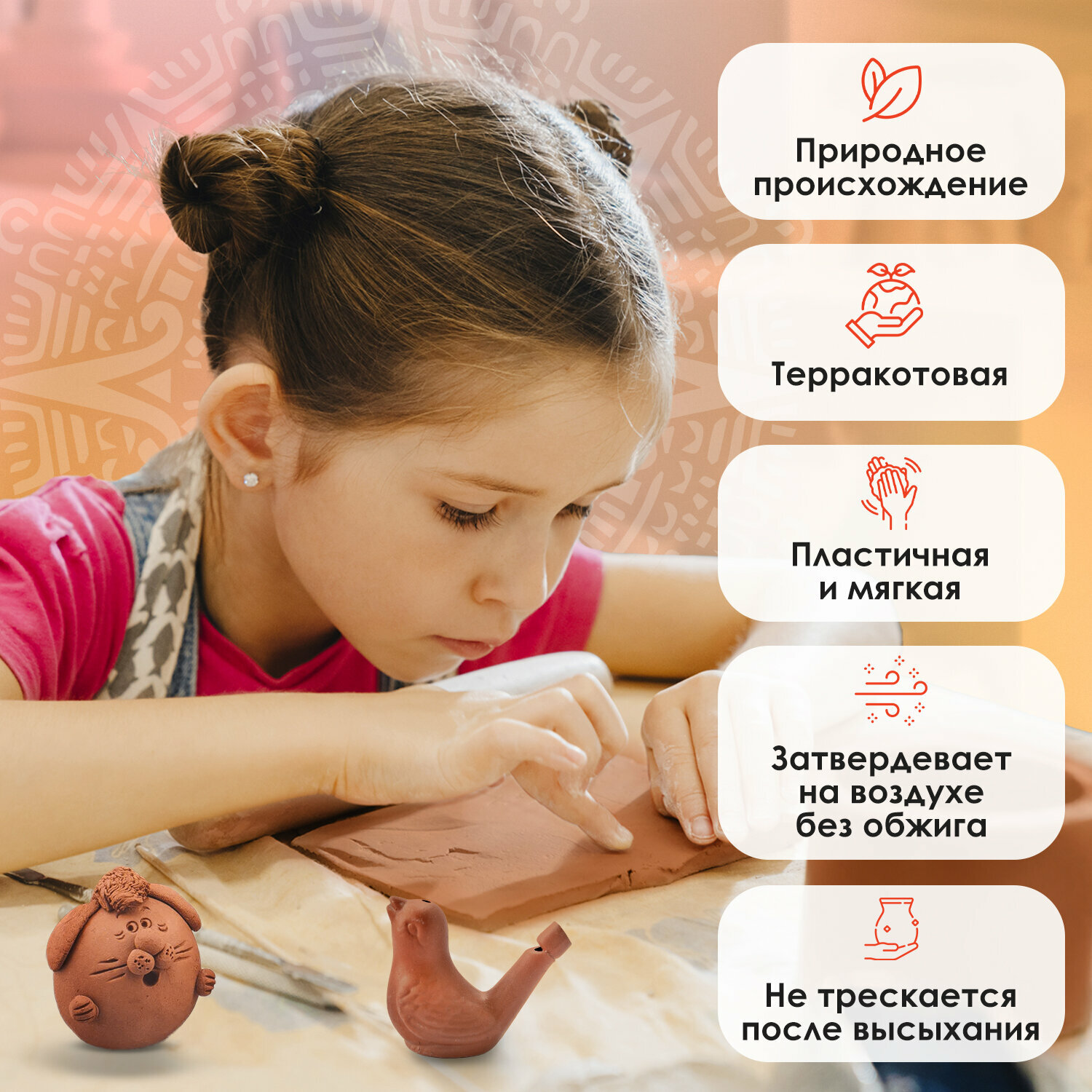 10 цен на Масса керамическая (глина) для скульптурной лепки самозатвердевающая художественная для творчества Остров Сокровищ, 1000 г, терракотовая, 228734