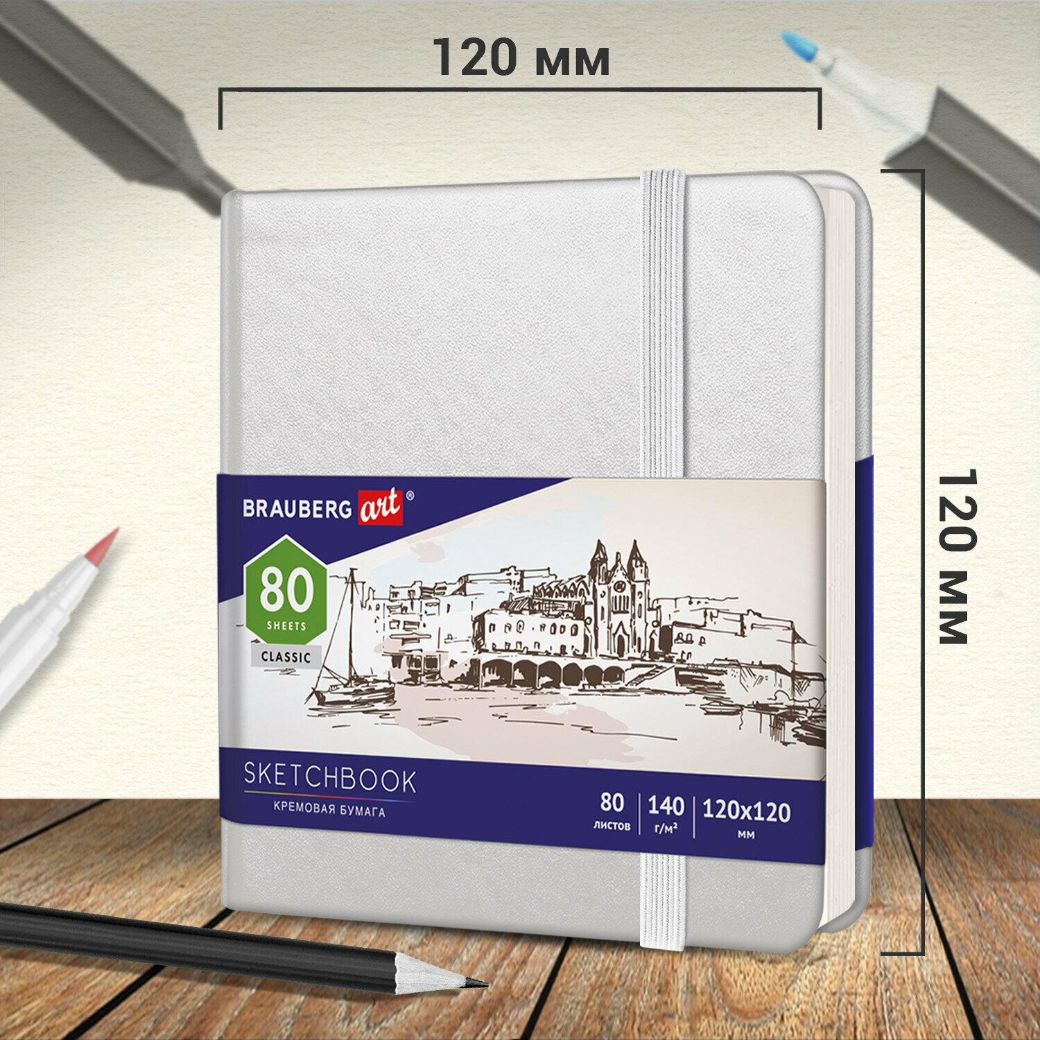 Скетчбук BRAUBERG ART Classic 12 х 12 см, 140 г/м², 80 л.