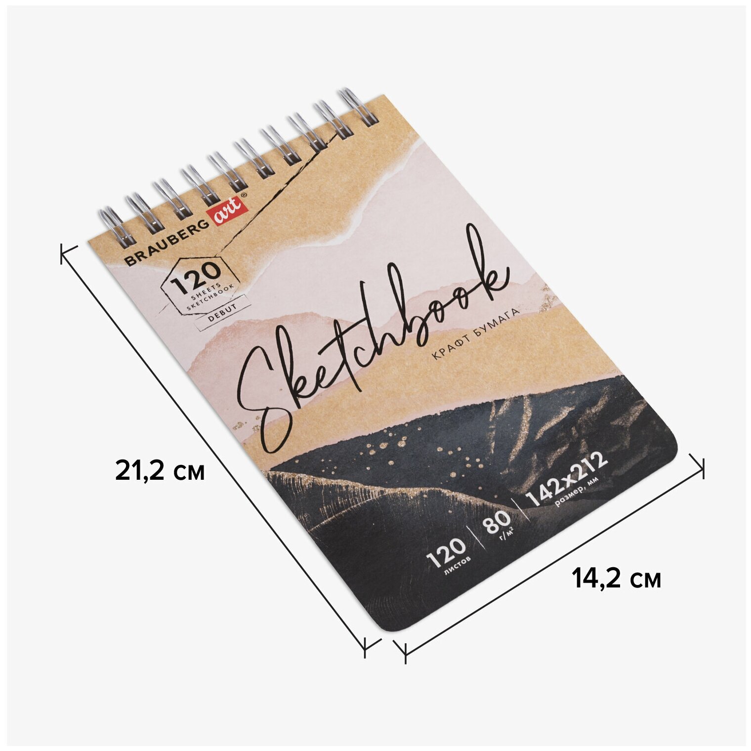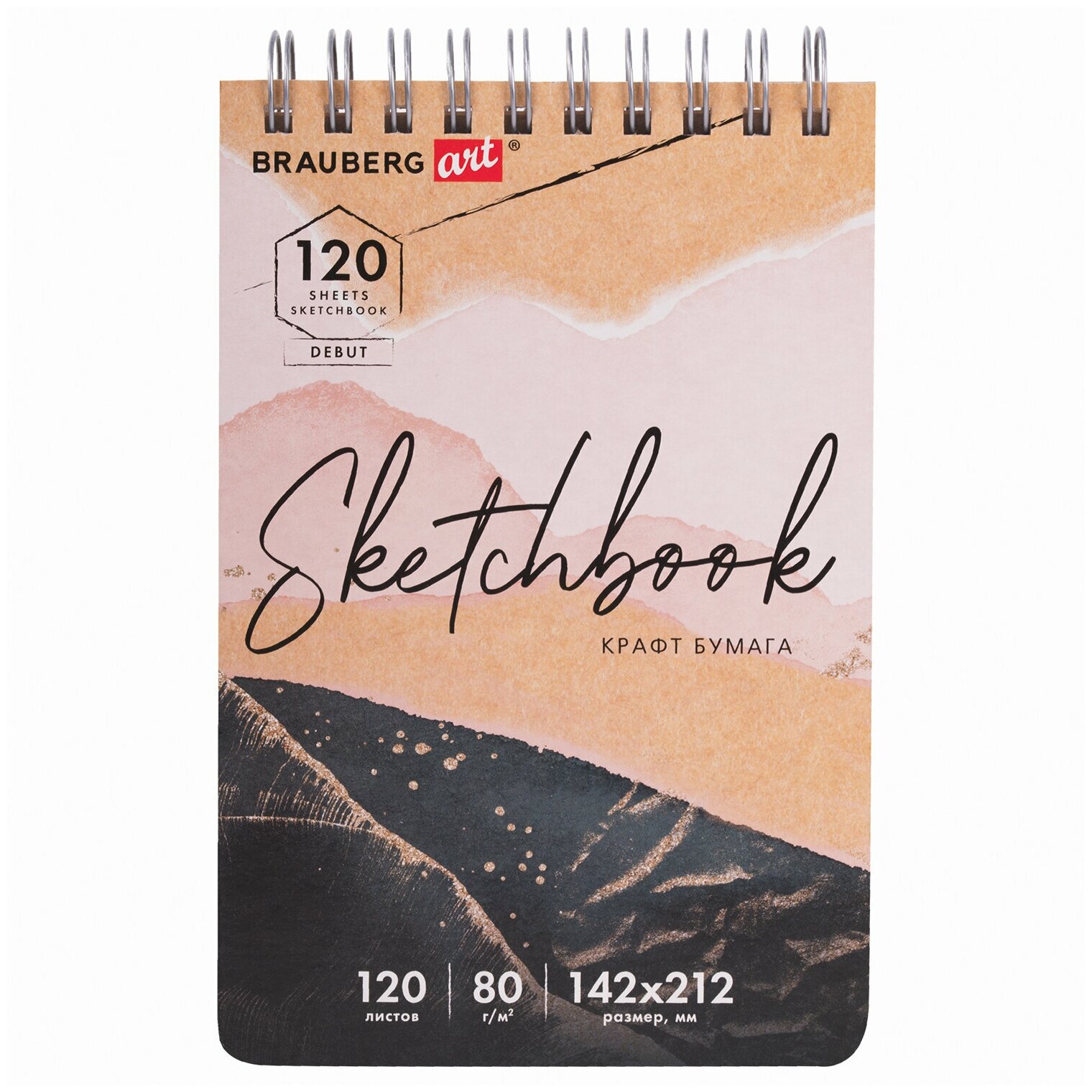 Скетчбук, крафт-бумага 80 г/м2, 142х212 мм, 120 л, гребень, твердая обложка, BRAUBERG ART DEBUT, 112998 (арт. 112998) 298 ₽