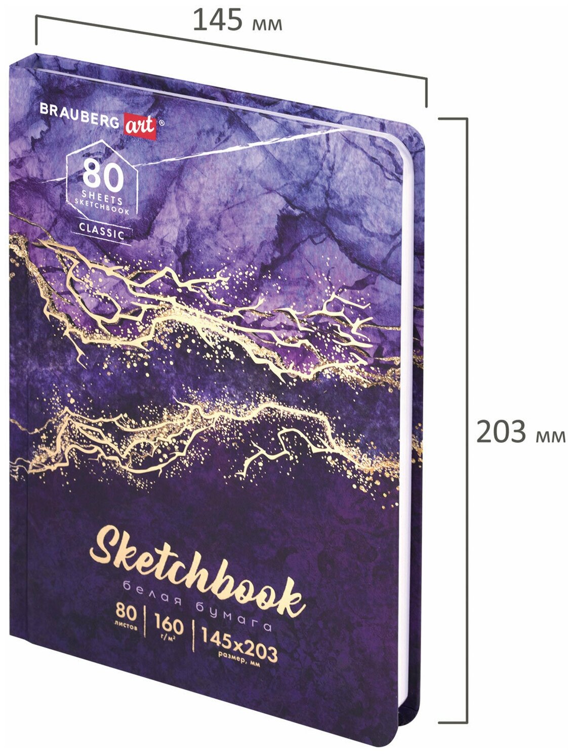 Скетчбук, белая бумага 160 г/м2, 145х203 мм, 80 л, твердая обложка, BRAUBERG ART CLASSIC "Мрамор", 114592 информация: