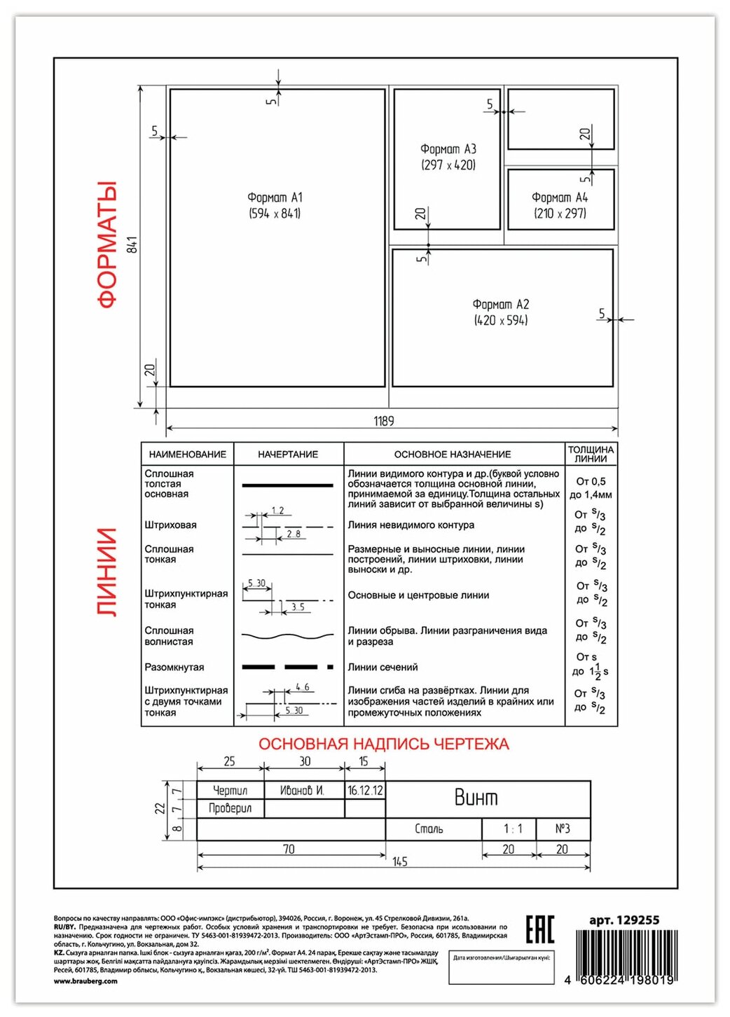 Папка для черчения BRAUBERG ГОЗНАК Кбф 29.7 х 21 см (A4), 200 г/м², 24 л.