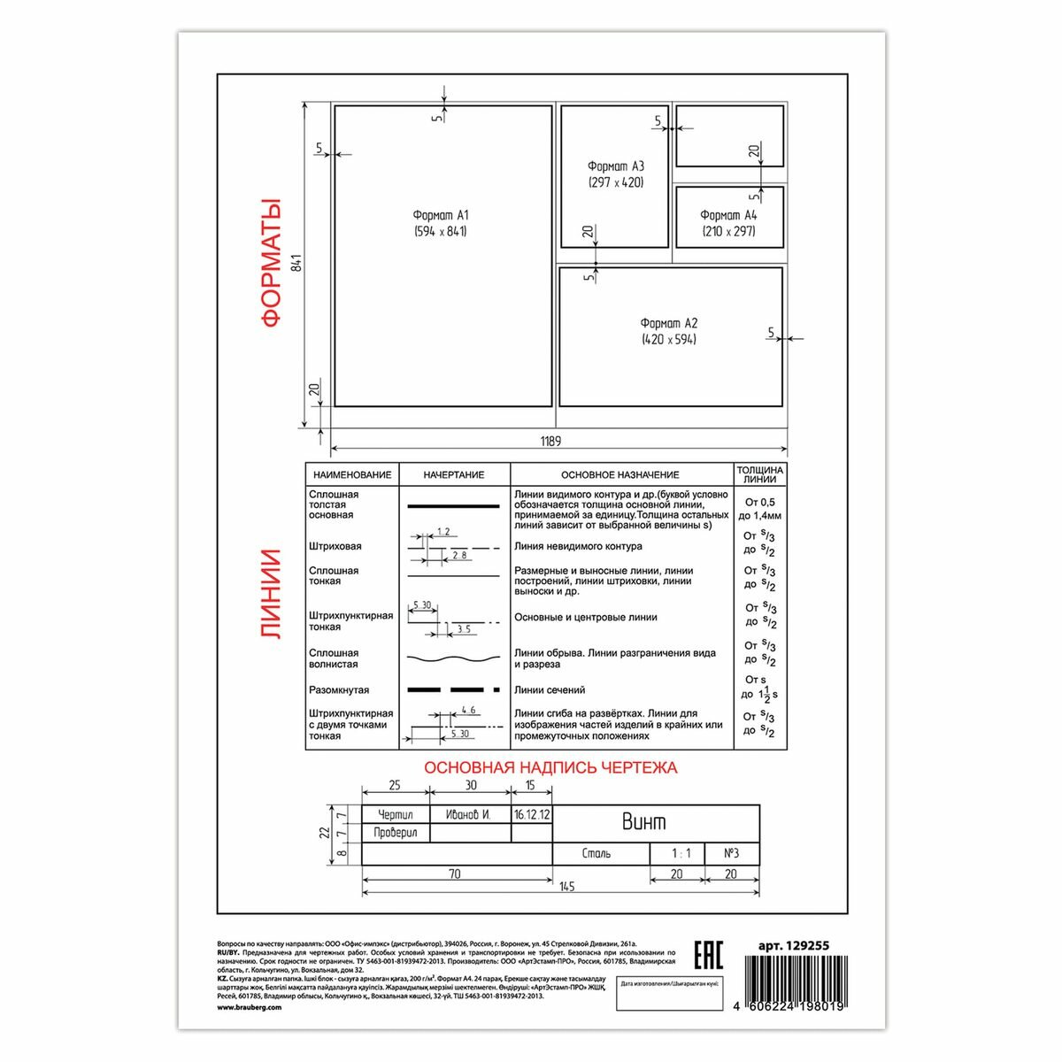 Папка для черчения Brauberg А4, 210х297 мм, 24 л, 200 г/м2, без рамки, ватман гознак КБФ, , 129255