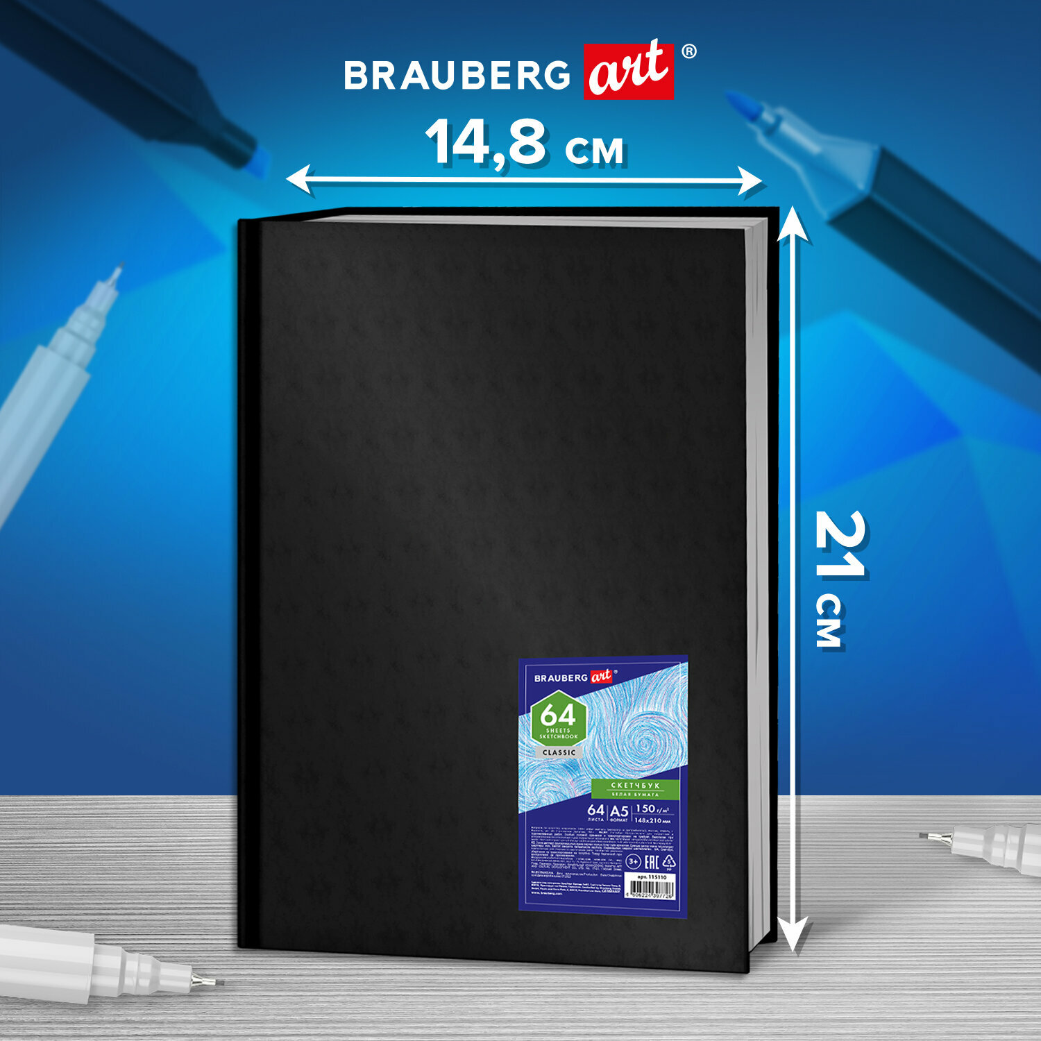 Скетчбук, белая бумага 150 г/м2, 148х210 мм, 64 л, книжный твердый переплет, BRAUBERG ART CLASSIC, 115110 информация: