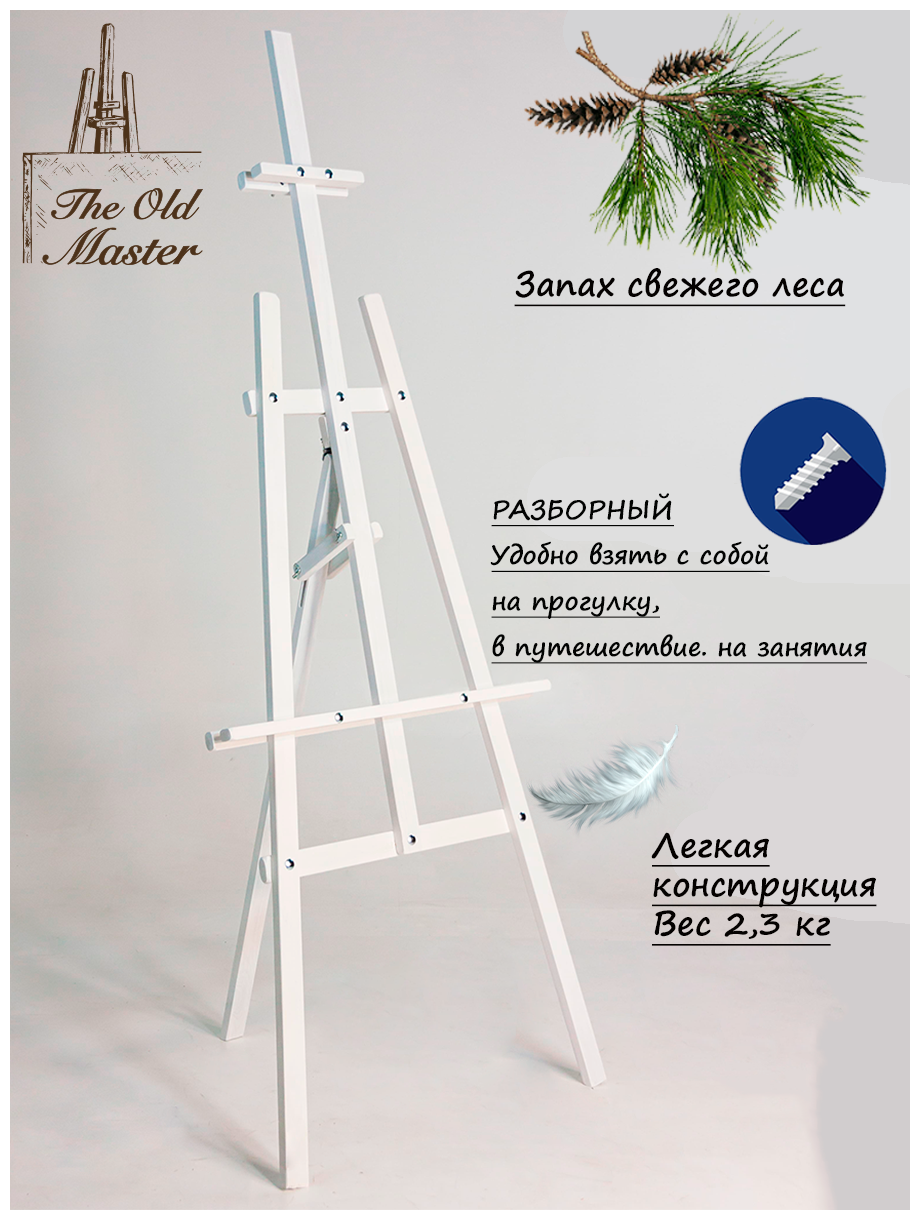 Мольберт Лира для рисования The Old Master, напольный, разборный, складной, 175 см, белоснежный глянец информация: