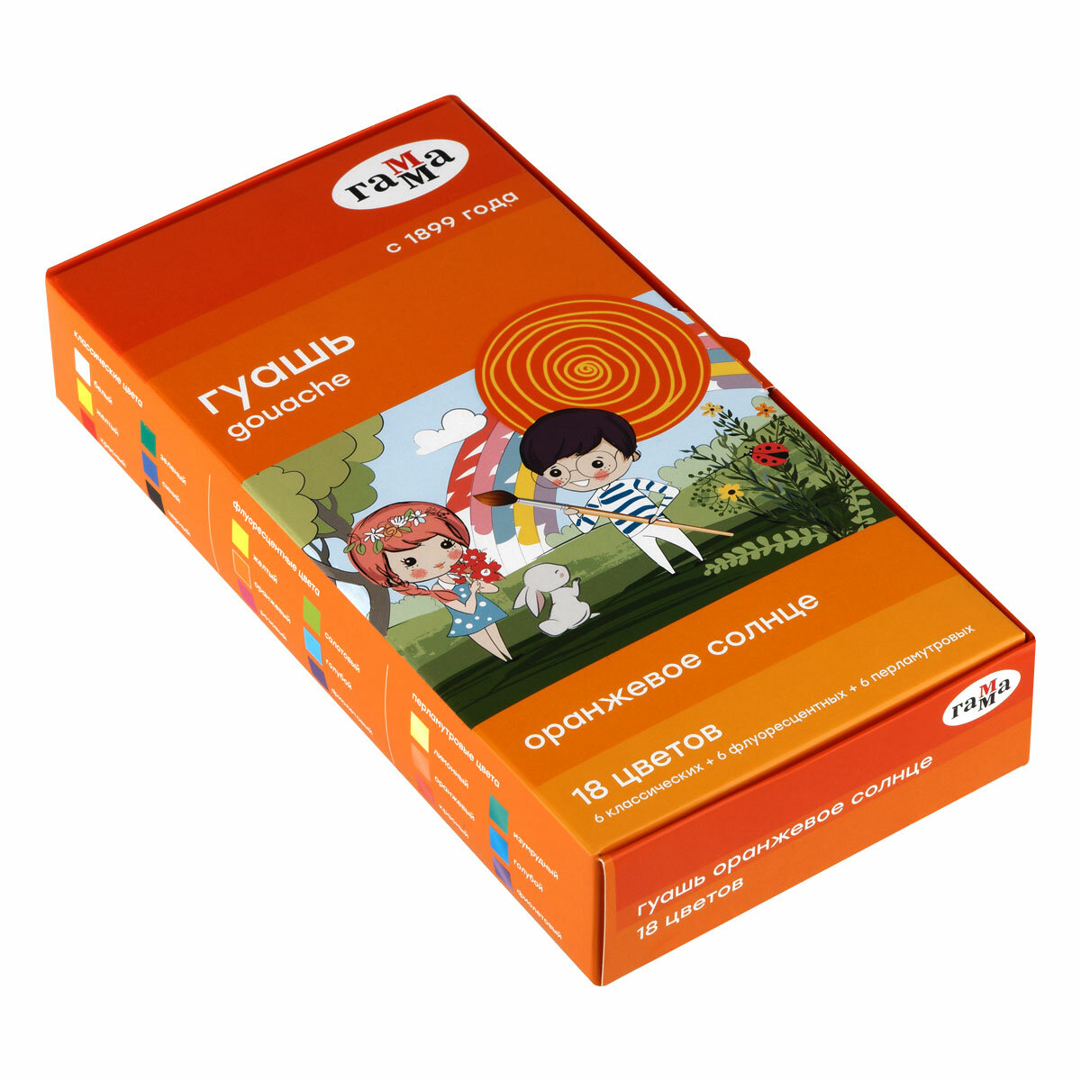 Гуашь Гамма "Оранжевое солнце", 18 цветов (6 перламутр.+ 6 классич.+ 6 флуор.), картон. упаковка 639 ₽