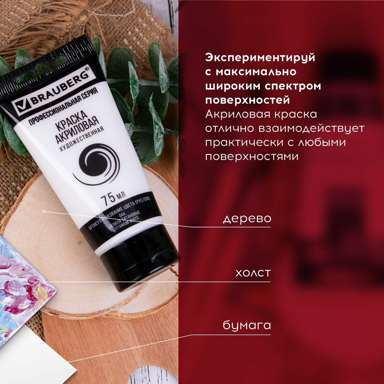 BRAUBERG Краска акриловая художественная Classic (профессиональная серия), 75 мл, белила титановые