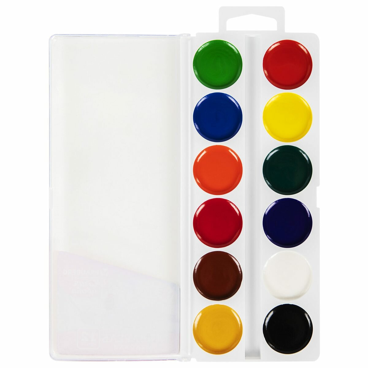 Краски акварельные для рисования, акварель для школы 12 цветов в круглых кюветах, пластиковый пенал, с кистью, Brauberg Kids, 191806
