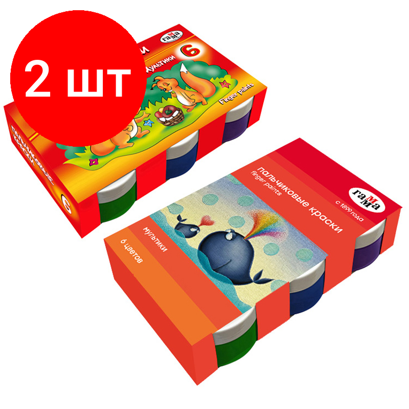 Комплект 2 шт, Краски пальчиковые Гамма "Мультики", классические, 06 цветов, 50мл, картон. упаковка информация: