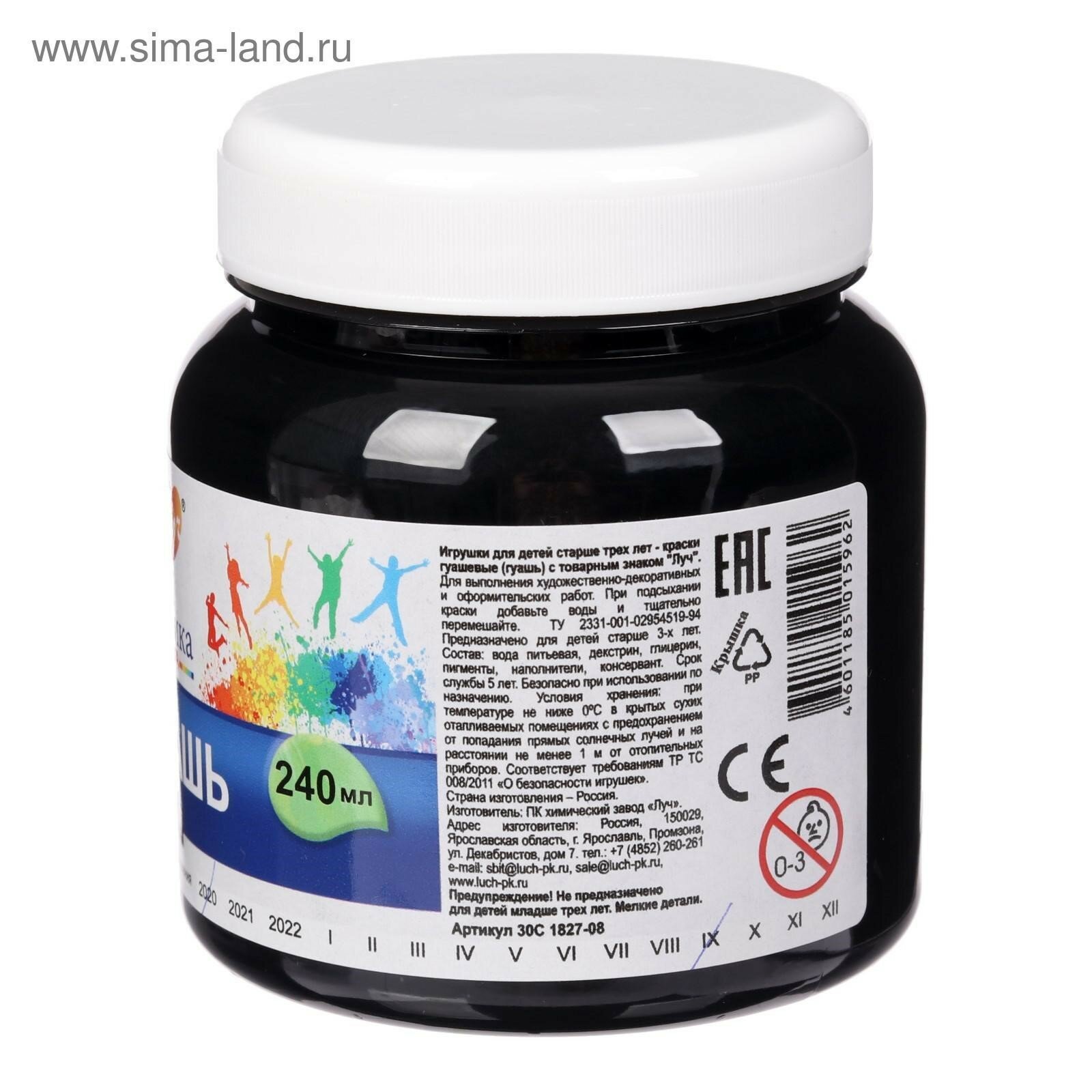 Гуашь художественная 1 шт. ЛУЧ "Классика", 240 мл, черная, 30С 1827-08 информация: