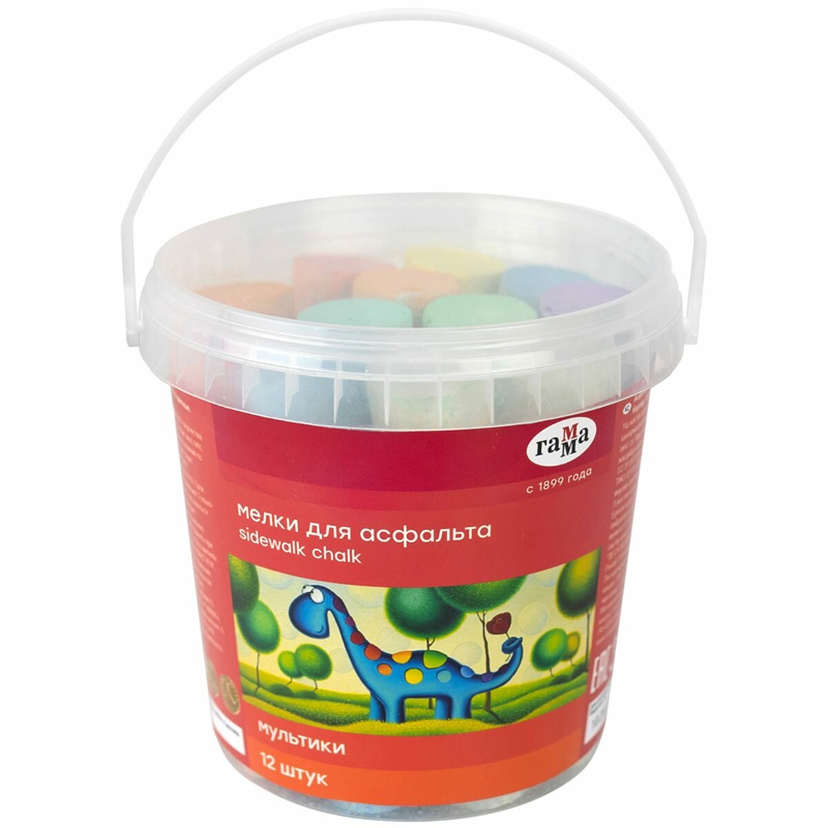 10 цен на Мел цветной асфальтный Гамма "Мультики", 6 цветов, круглые, пластиковое ведро, 12шт. (171220212), 4 уп.