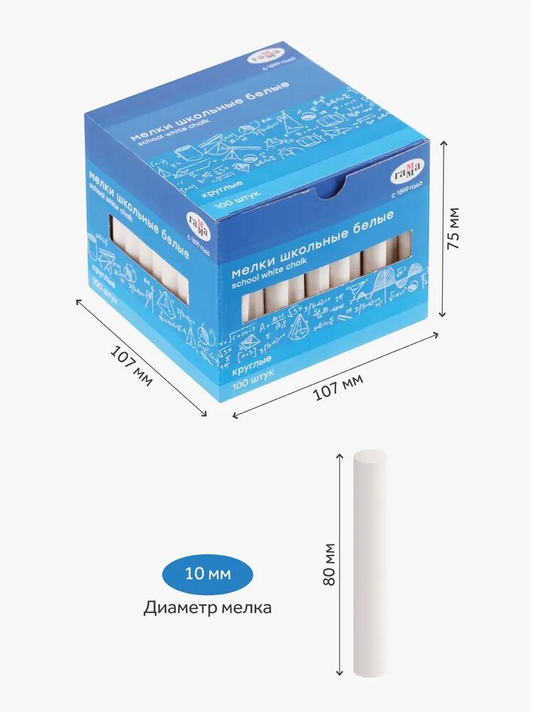 Мелки школьные Гамма, белые, 100шт, мягкие, круглые, картонная коробка информация:
