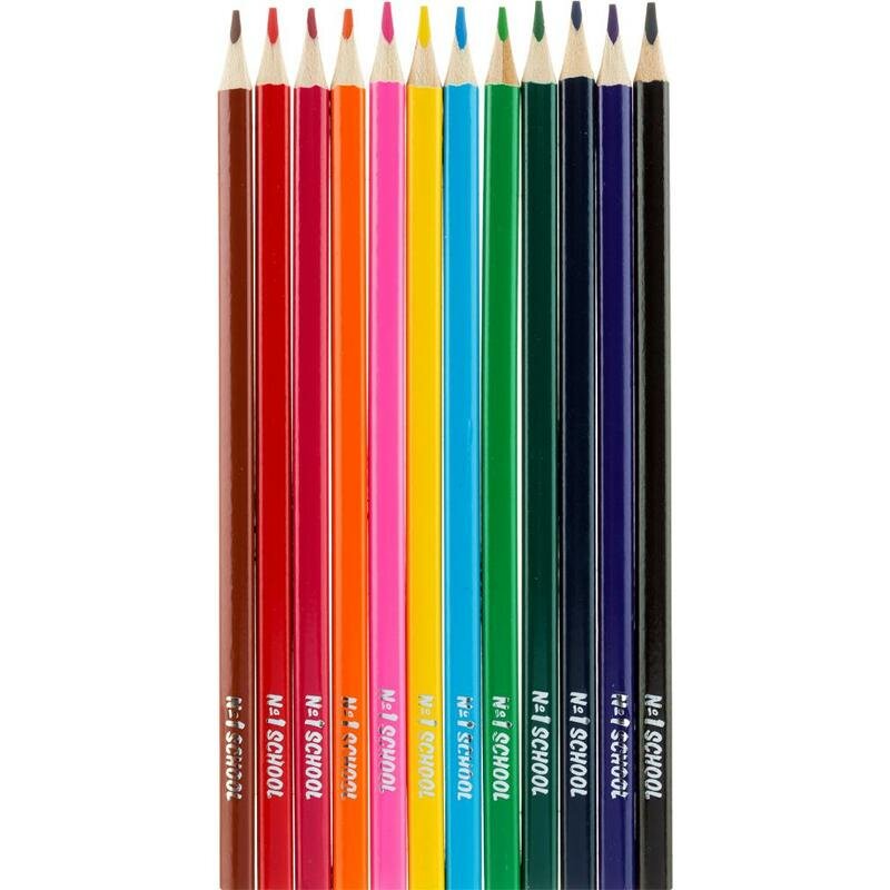 Карандаши цветные №1 School, трехгранные, толщина грифеля 2,8 мм, набор 12 цветов, 2 упаковки 300 ₽