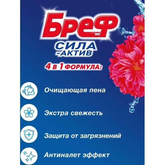 Блок для унитаза Bref бреф Сила Актив Цветочная свежесть, 3*50г информация: