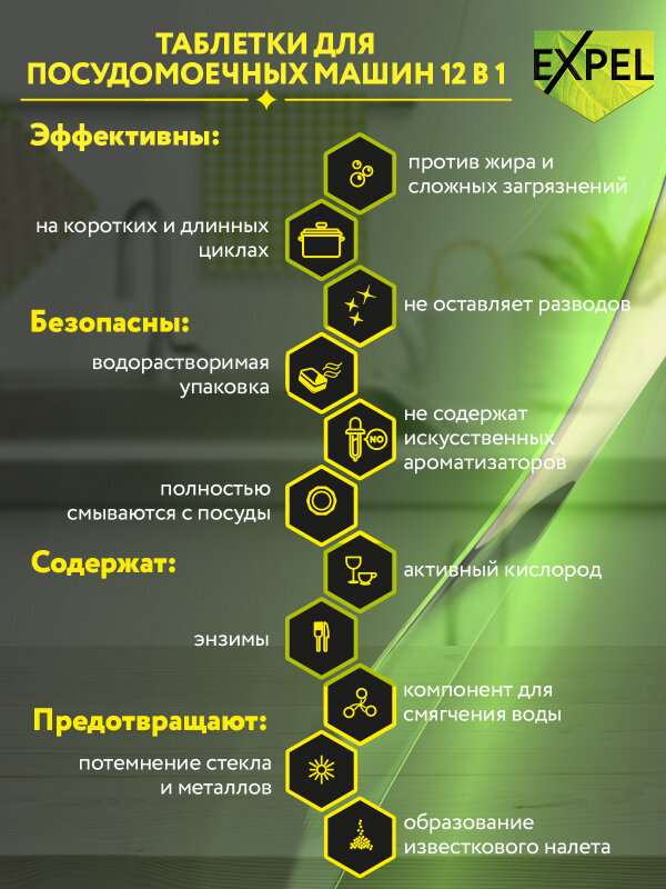 | Комплектация | Таблетки для посудомоечных машин Expel |