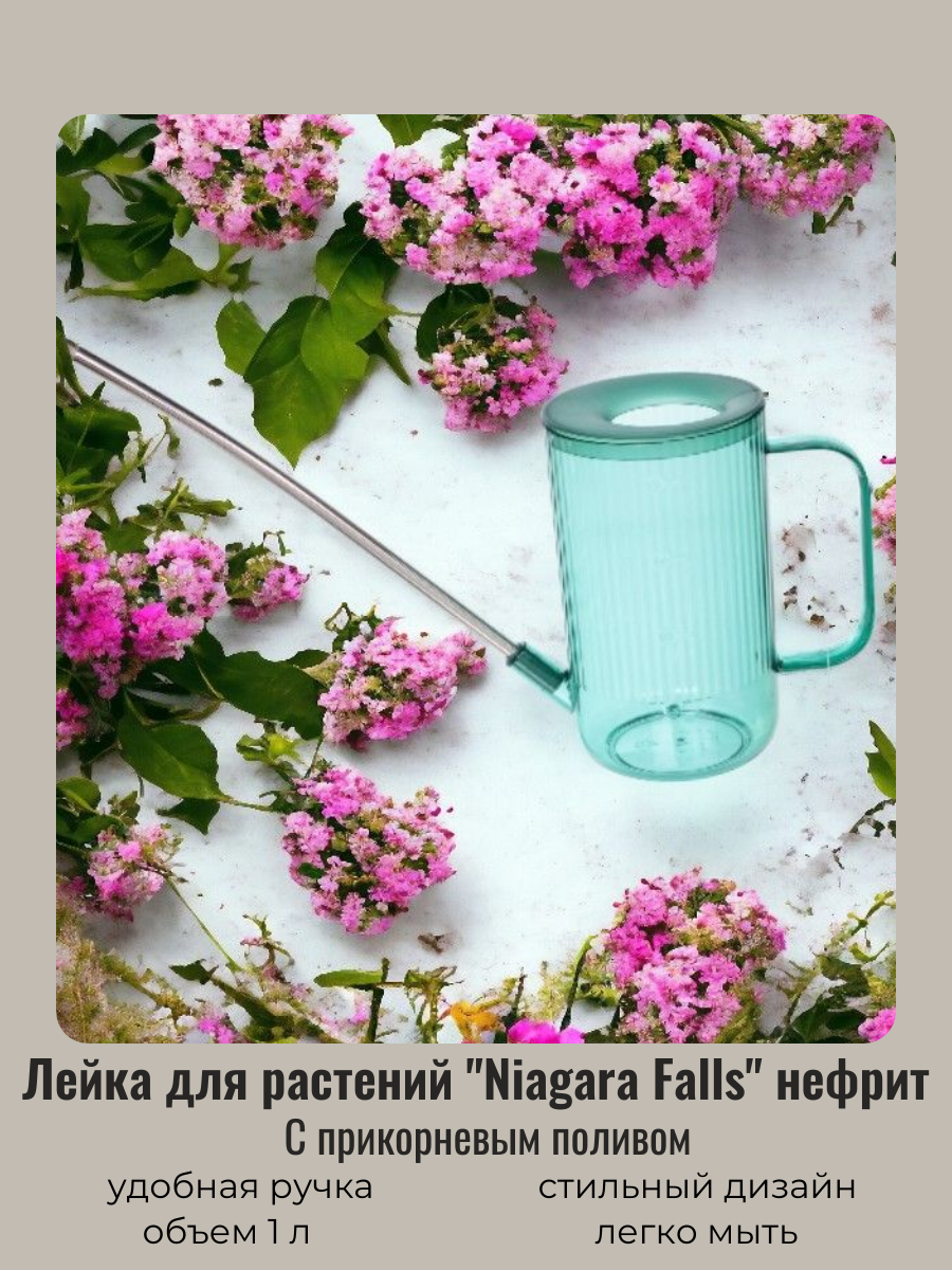 Лейка для цветов и комнатных растений 1л "Niagara Falls" с прикорневым поливом, нефрит ДоброСад