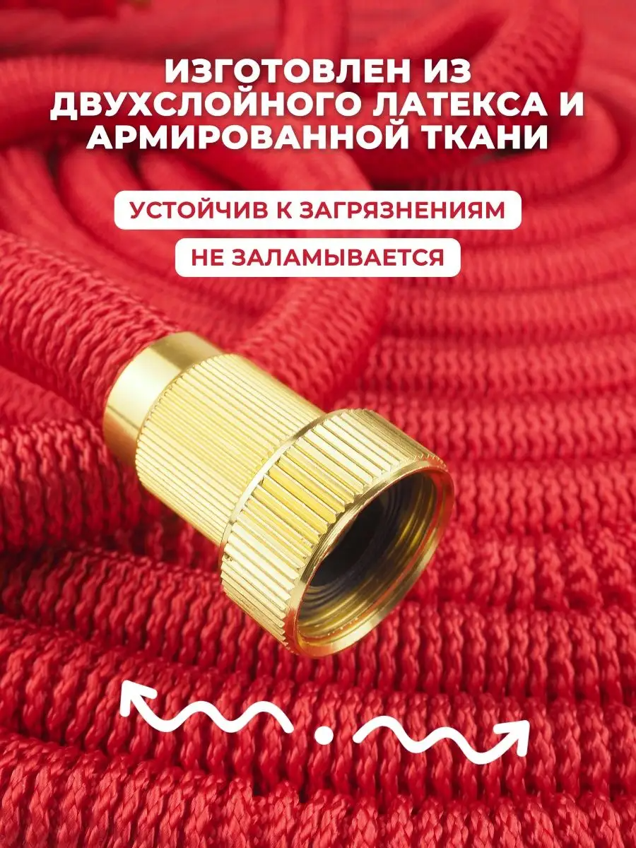 Шланг садовый растягивающийся 50 метров для полива с распылителем 50 метров красный с металлическим соединением 2 480 ₽
