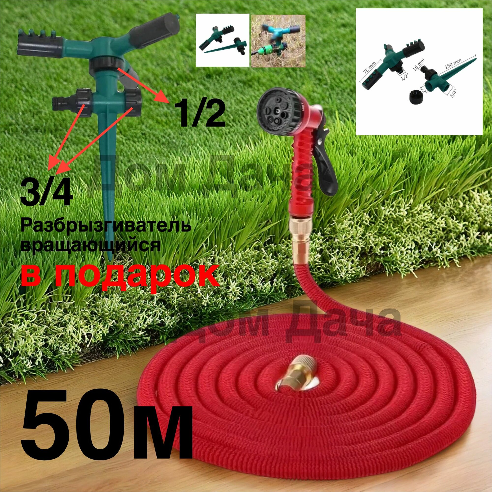 Шланг садовый для полива растягивающийся с пистолетом 50м информация: