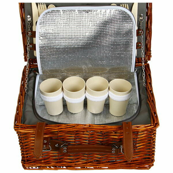 | Комплектация | • термостойкие тарелки 4 штуки • столовые приборы из пищевой нержавеющей стали с пластиковыми ручками (вилки, ножи, ложки по 4 штуки) • термостойкие пластиковые стаканы (бокалы) 4 штуки • плед 1 штука • 4 индивидуальные салфетки • штопор 1 штука |