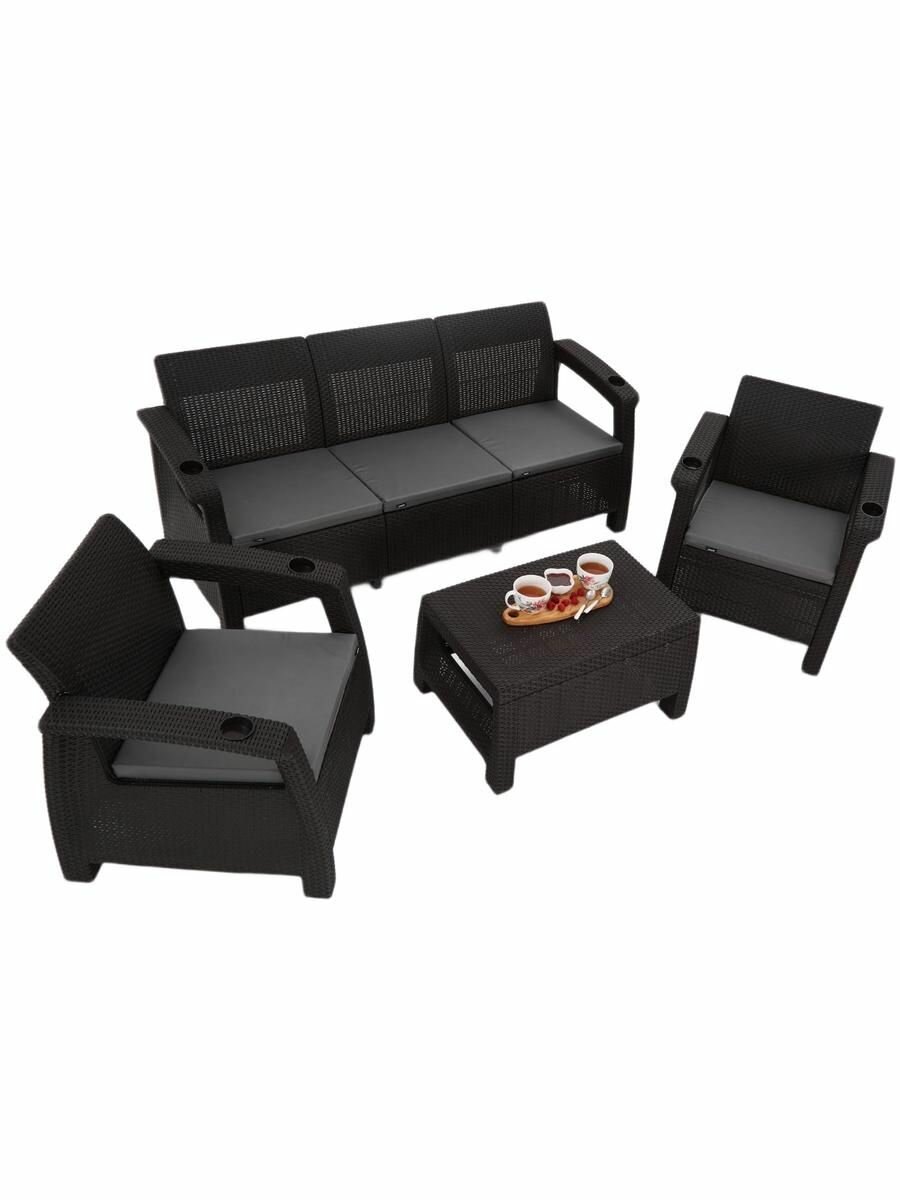 Садовая мебель HomlyGreen Set 3+1+1+кофейный столик + подушки серого цвета информация: