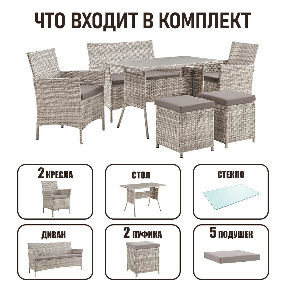 10 цен на Садовая мебель для дачи Киото-6 комплект на 6 персон из искусственного ротанга, серый меланж