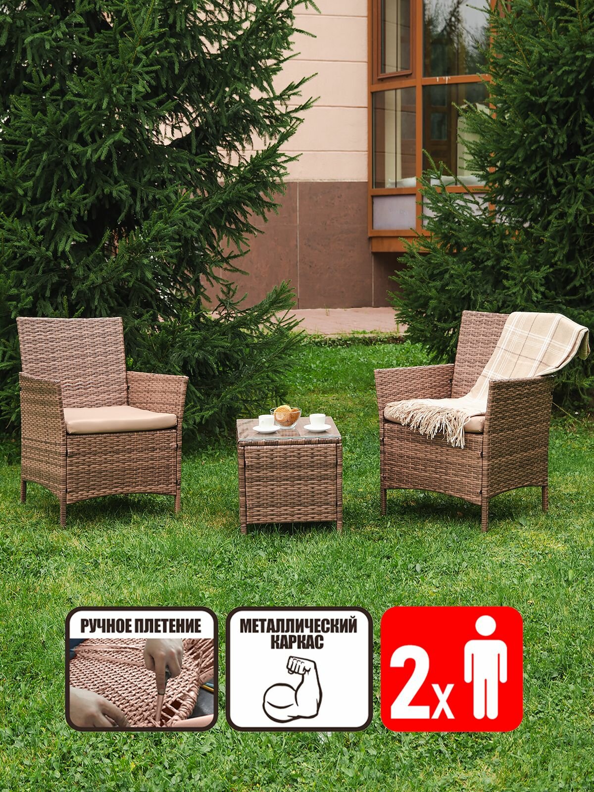 10 цен на Садовая мебель для дачи Киото Дуэт комплект на 2 персоны из искусственного ротанга, капучино