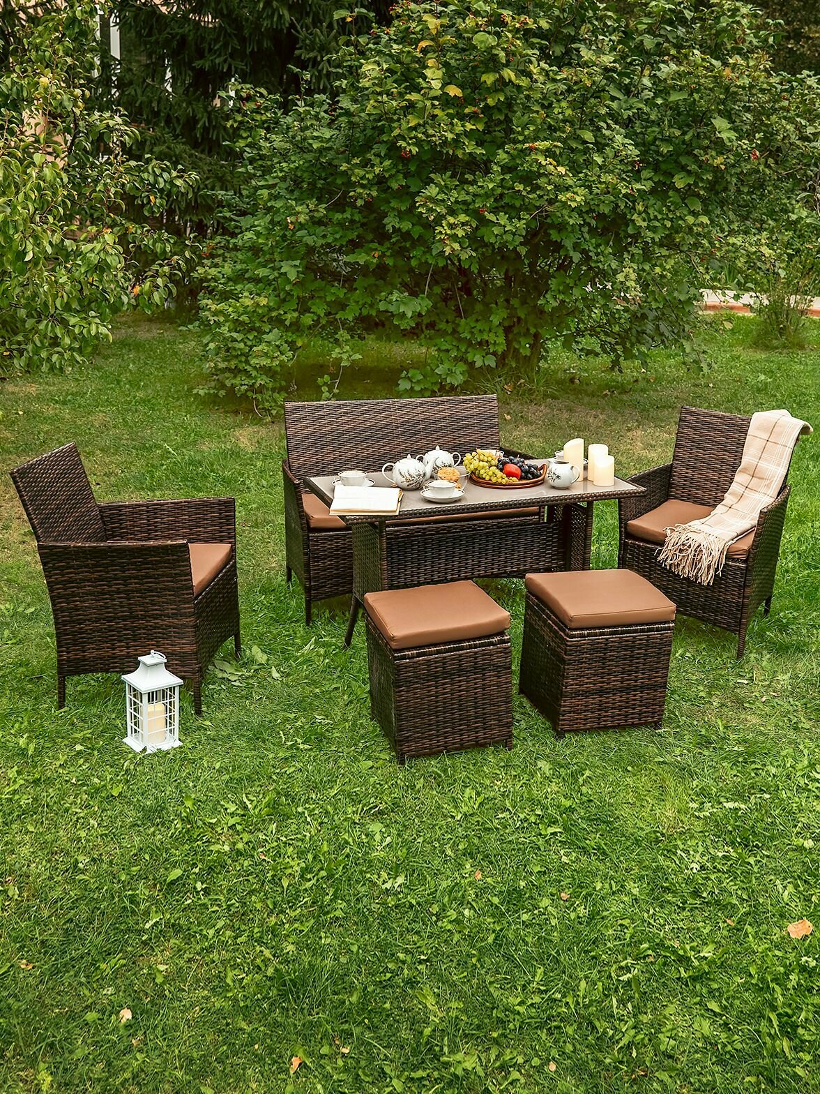 10 цен на Садовая мебель для дачи Киото-6 комплект на 6 персон из искусственного ротанга, шоколад