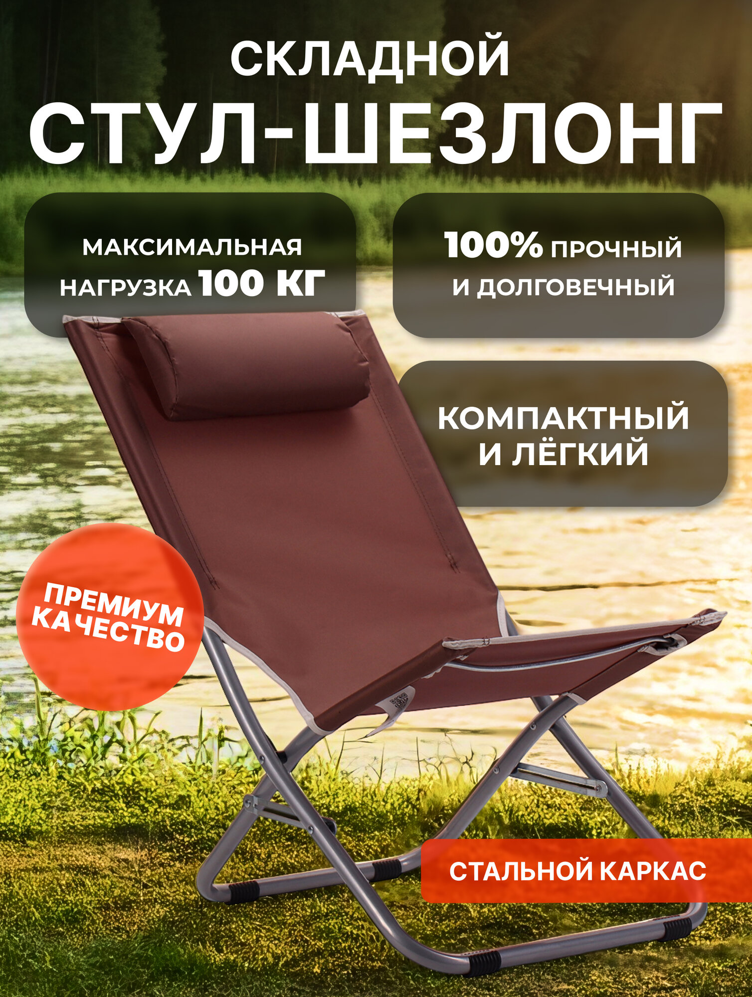Отзывы на Стул-шезлонг складной GALEONTRADE, с подголовником, металл, полиэстер, 72x48x76см