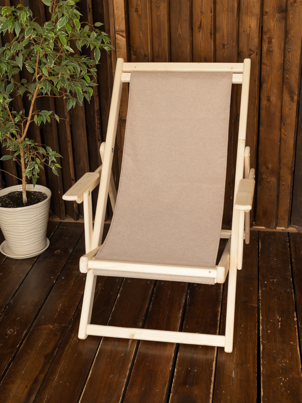 Шезлонг с светло-серой тканью и подлокотниками, деревянный, складной 6 300 ₽