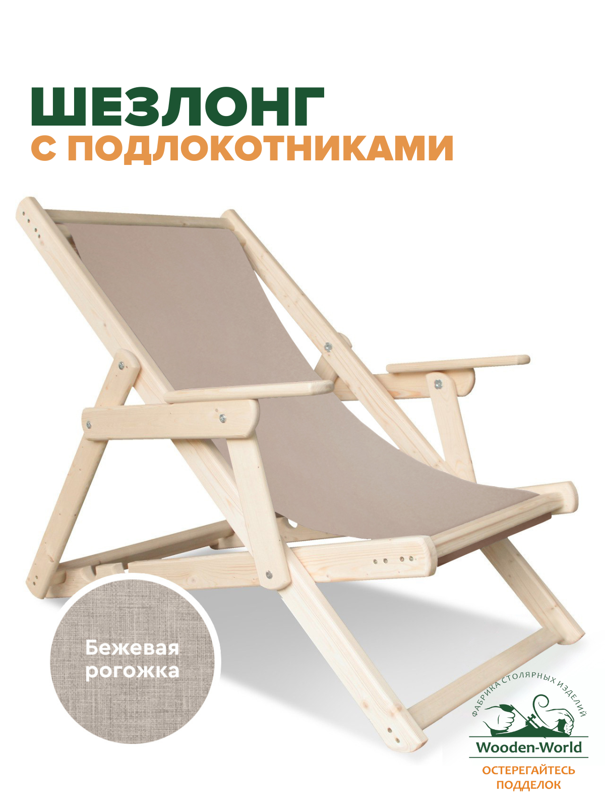 10 цен на Шезлонг для дачи складной деревянный с подлокотниками, ткань бежевая