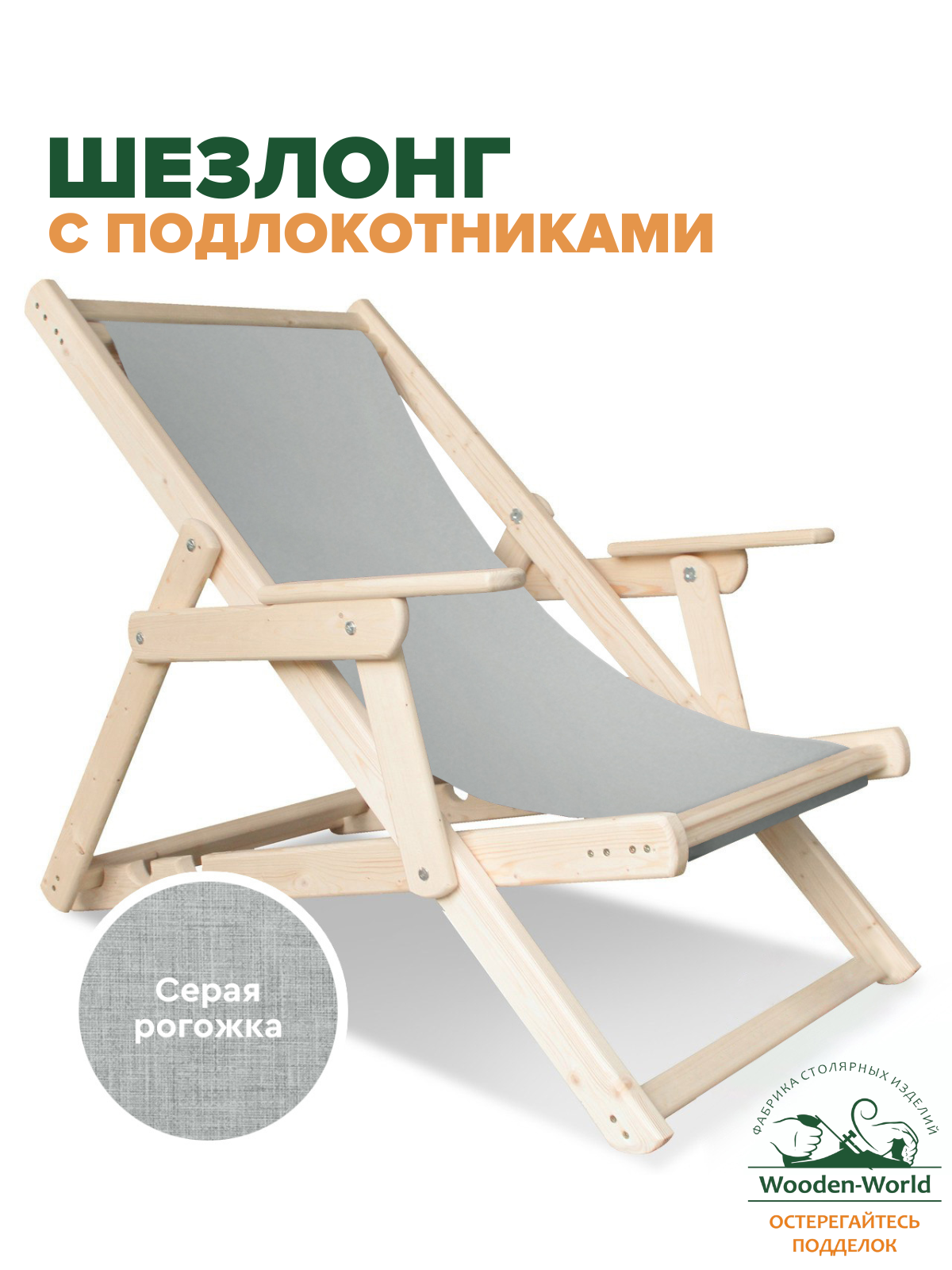Шезлонг с серой тканью и подлокотниками, деревянный, складной 6 300 ₽