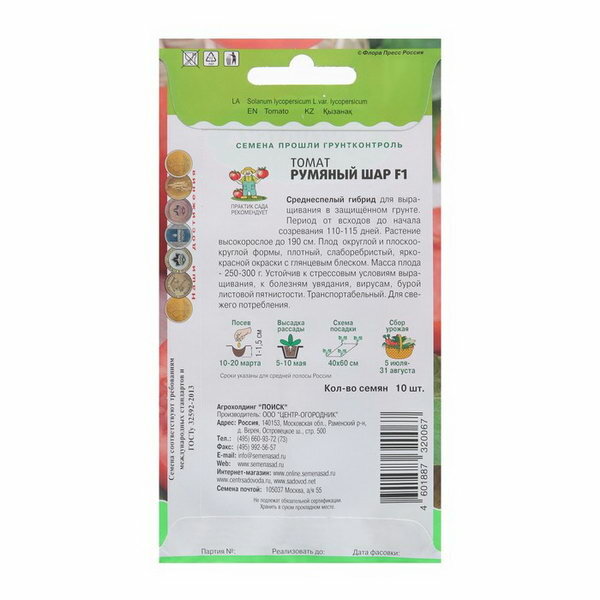 Семена Томат "Румяный шар F1" 10 шт информация:
