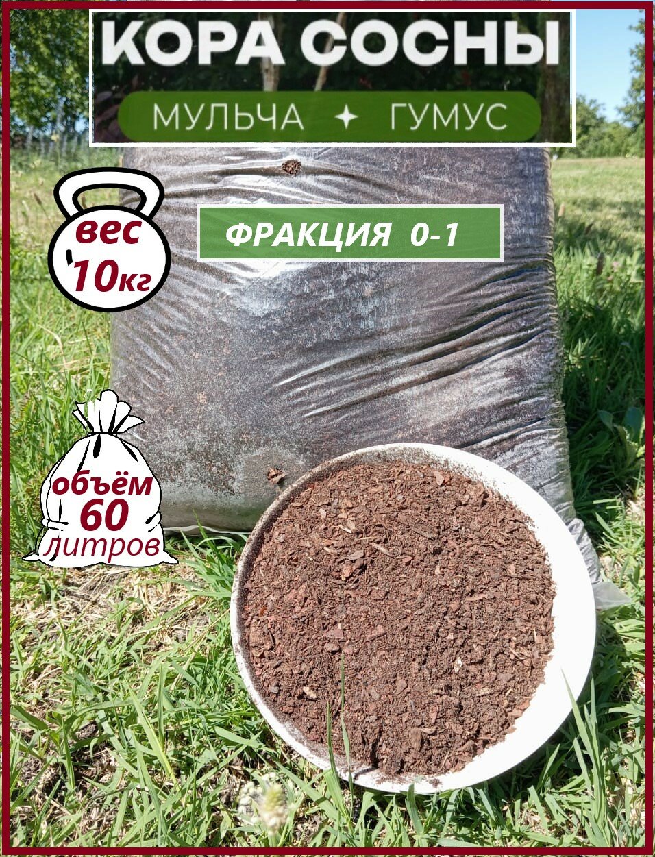 Мульча. Кора лиственницы, 0-1, гумус. Мульча для сада 60 литров информация: