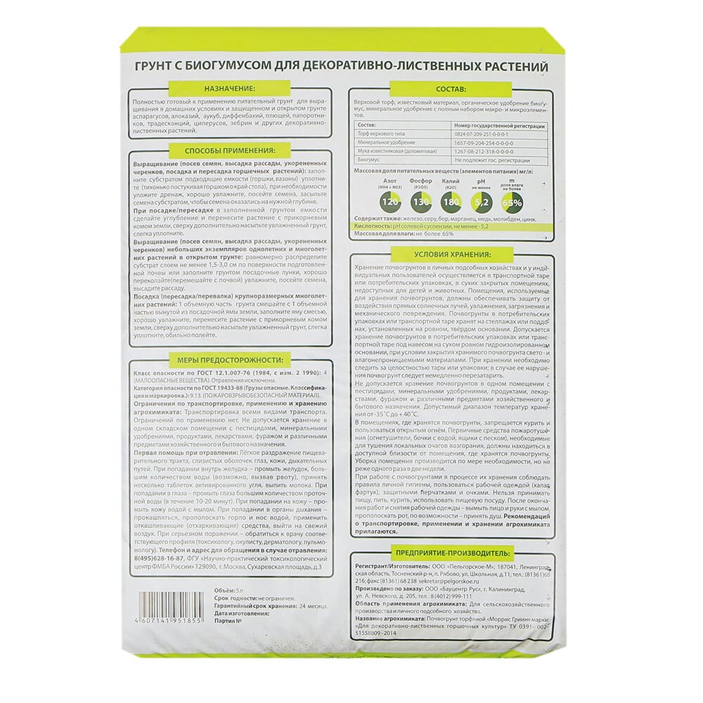 | Состав | Грунт для декоративно-лиственных растений 5 л |