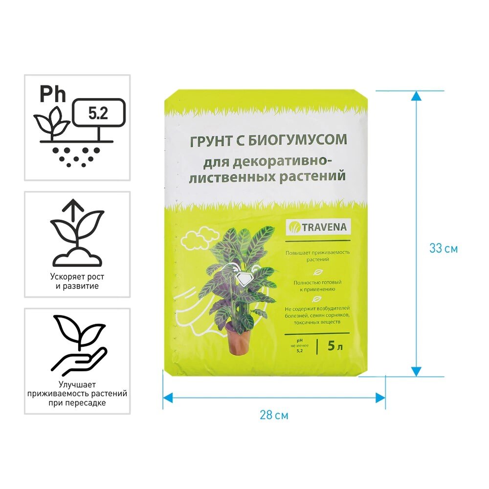 10 цен на Грунт TRAVENA для декоративно-лиственных растений с биогумусом, 5 л