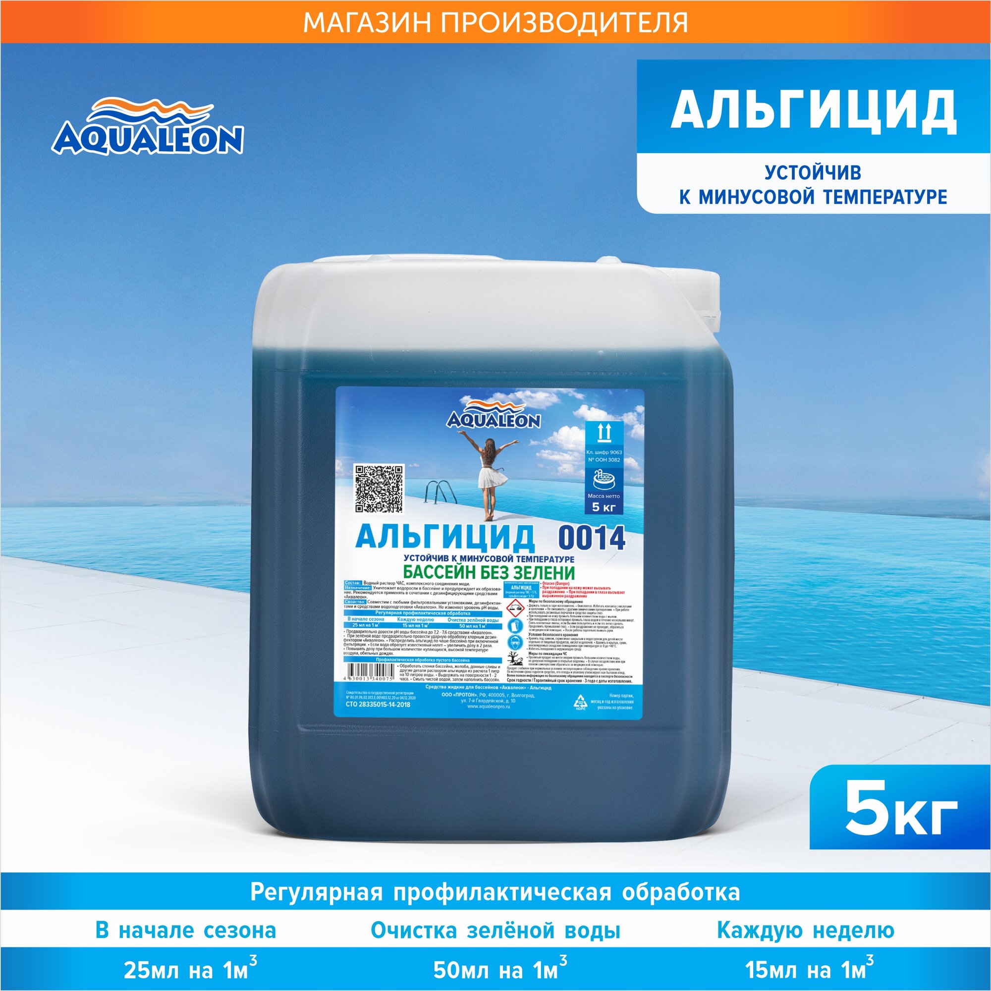 Альгицид для бассейна Aqualeon 5 кг, против цветения, очистка воды информация: