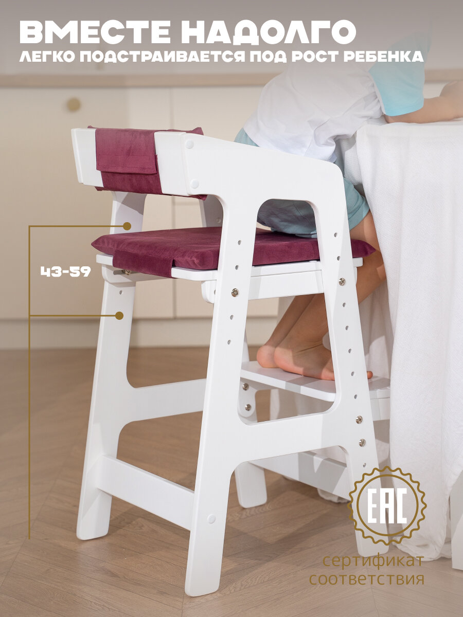 Растущий стул РАСТУЛЬЧИК для детей белый с бордовой подушкой информация: