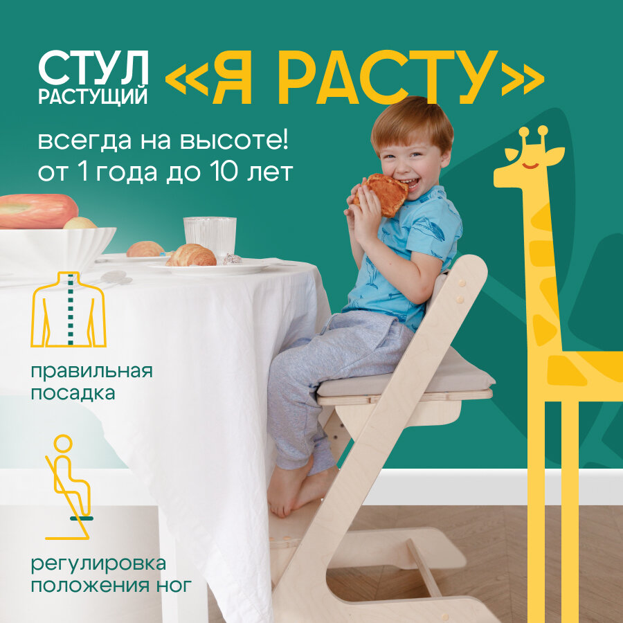 Растущий стул РАСТУЛЬЧИК, дерево/фанера, 59см, до 10 лет, максимальная нагрузка 100кг 6 442 ₽