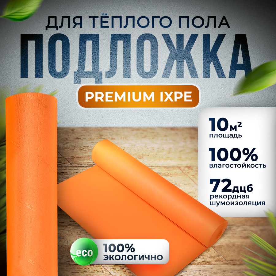 Отзывы на Подложка под кварцвинил, SPC ламинат и ПВХ плитку AF orange premium IXPE 1,5 мм, 10 кв. м, для теплого пола