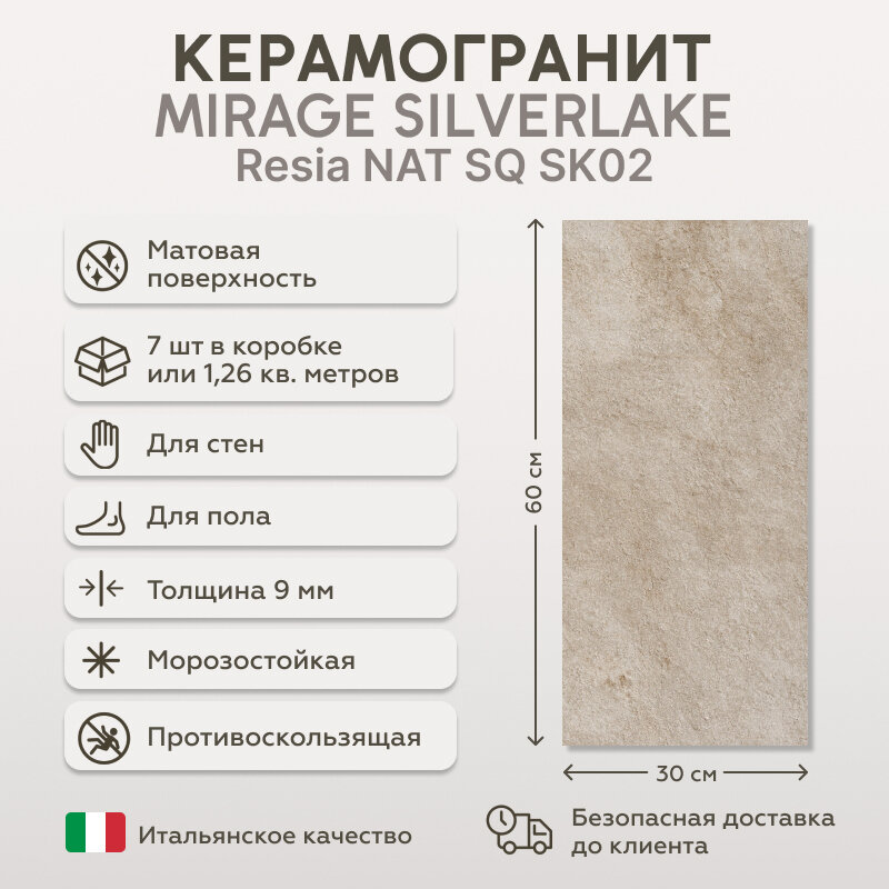 Керамогранит Mirage SILVERLAKE Resia NAT SQ SK02 30x60 см, 1.26 кв. м (7 шт в упак) информация: