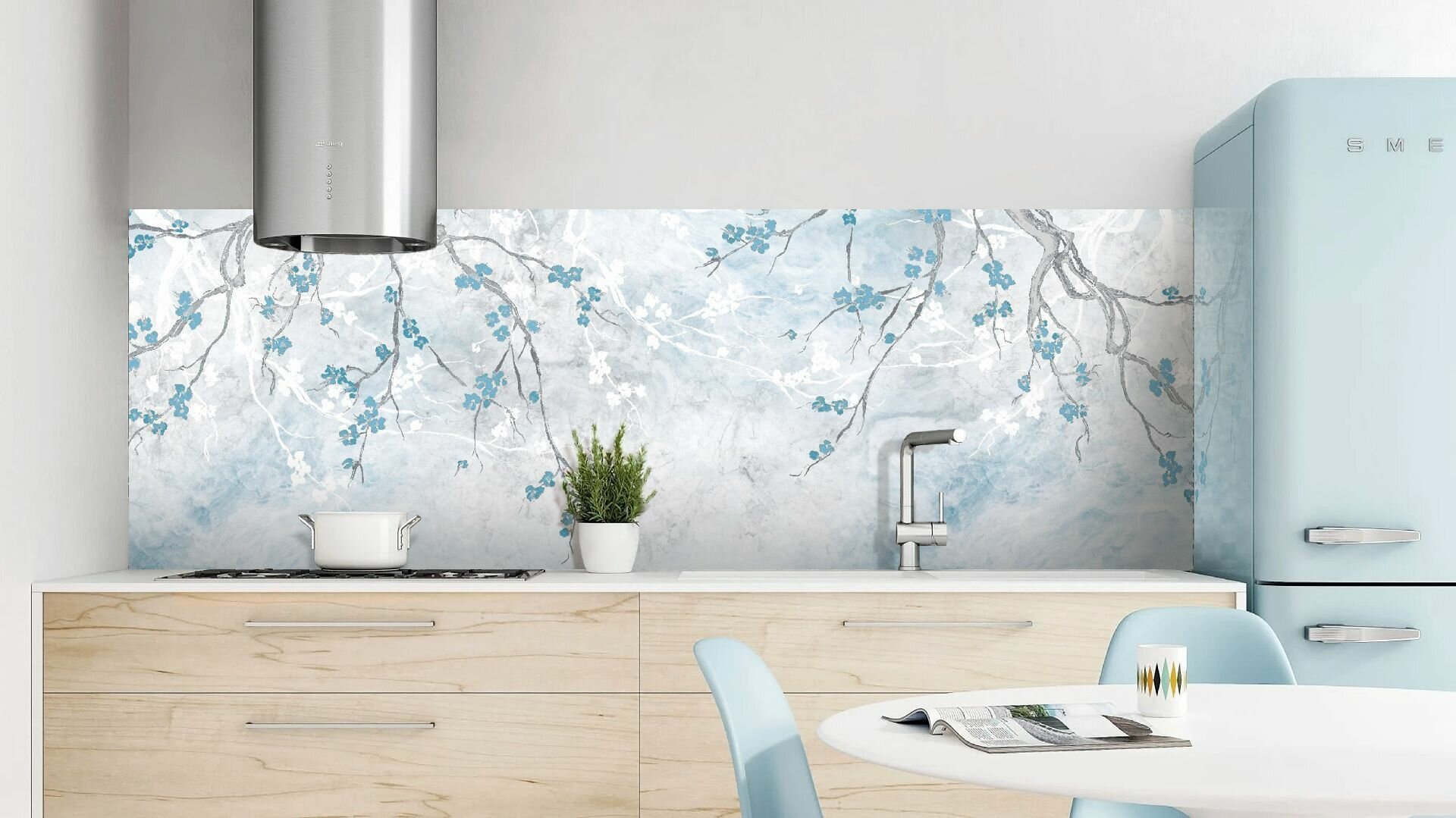 Фартук для кухни на стену 3000х600 мм, глянцевый Зимняя сакура. Панель стеновая ПВХ влагостойкая декоративная 3 040 ₽