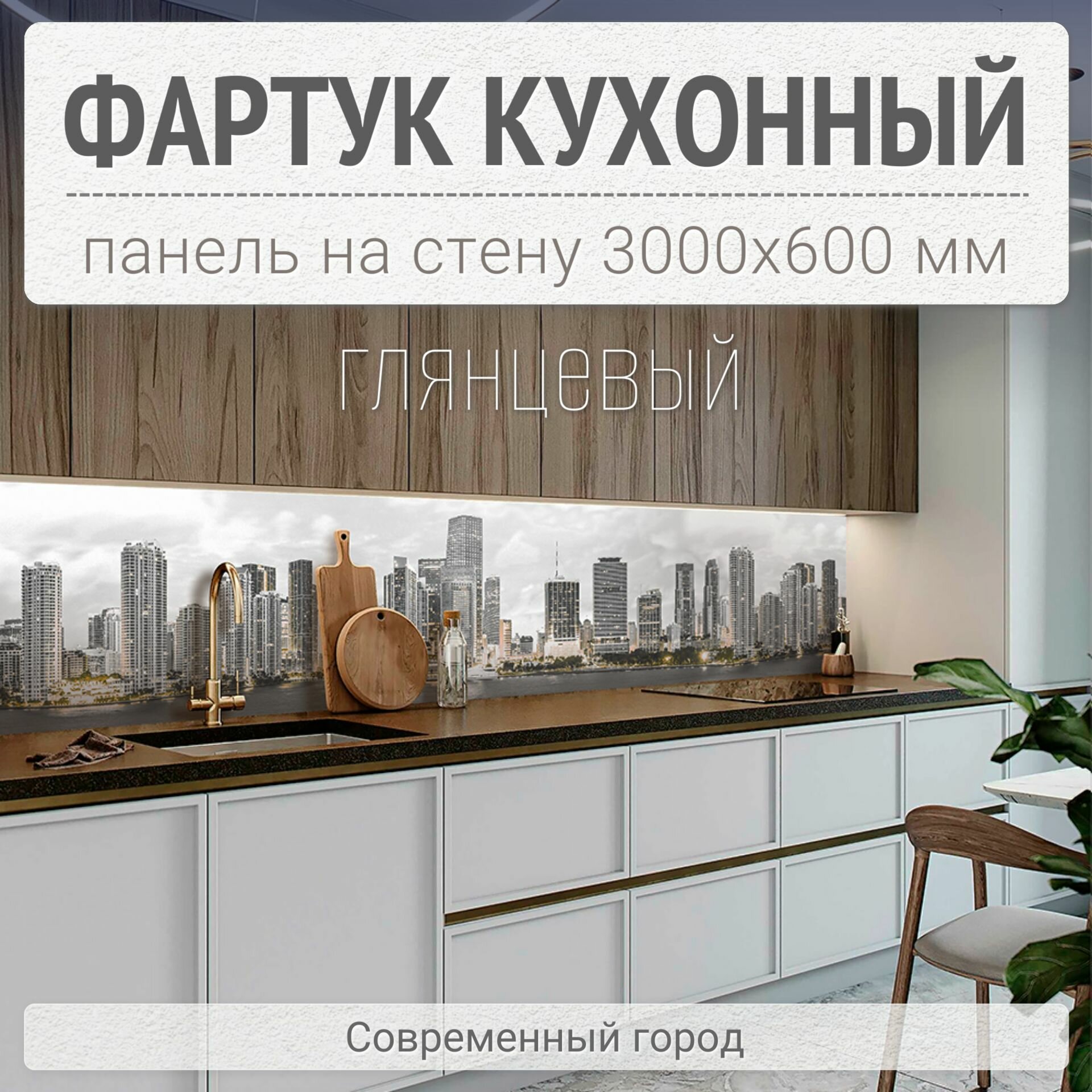 10 цен на Фартук для кухни на стену 3000х600 мм, глянцевый Современный город. Панель стеновая ПВХ влагостойкая декоративная