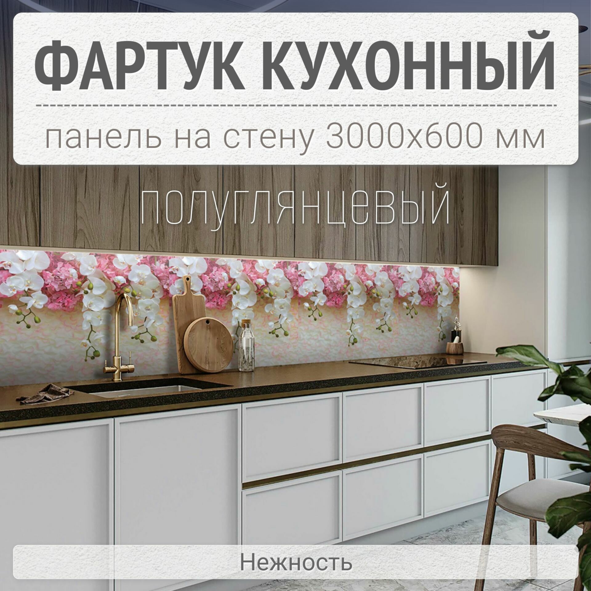 Фартук для кухни на стену 3000х600 мм, глянцевый Молочная орхидея. Панель стеновая ПВХ влагостойкая декоративная 3 040 ₽