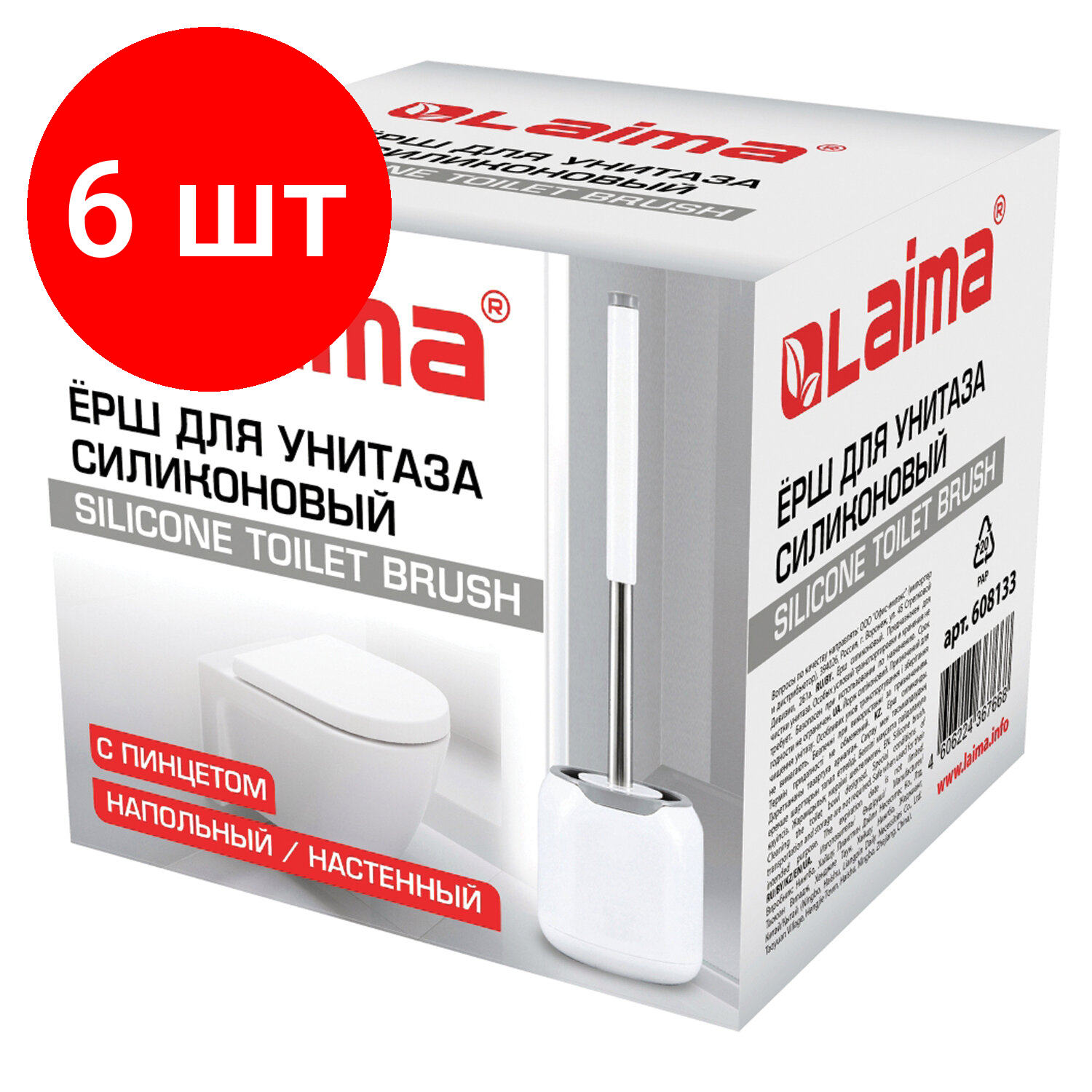 10 цен на Комплект 6 шт, Ершик для унитаза силиконовый ROUND TYPE напольный / настенный с креплением и пинцето