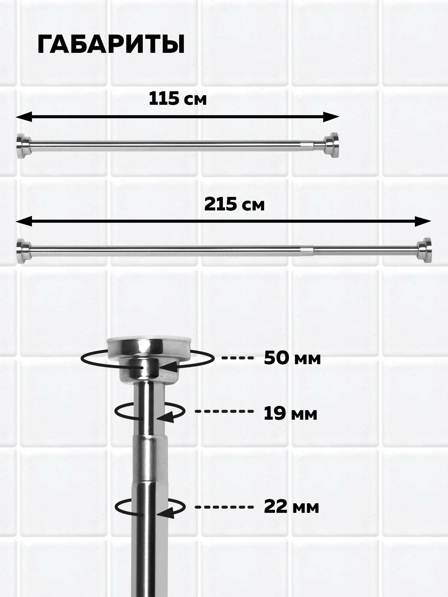 Карниз для ванной телескопический раздвижной серебряный Ridberg 115-215 см / Штанга для душа распорная 816 ₽