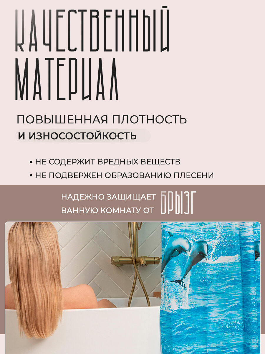 Штора для ванной комнаты Доляна «Дельфины», 180×180 см, PEVA информация: