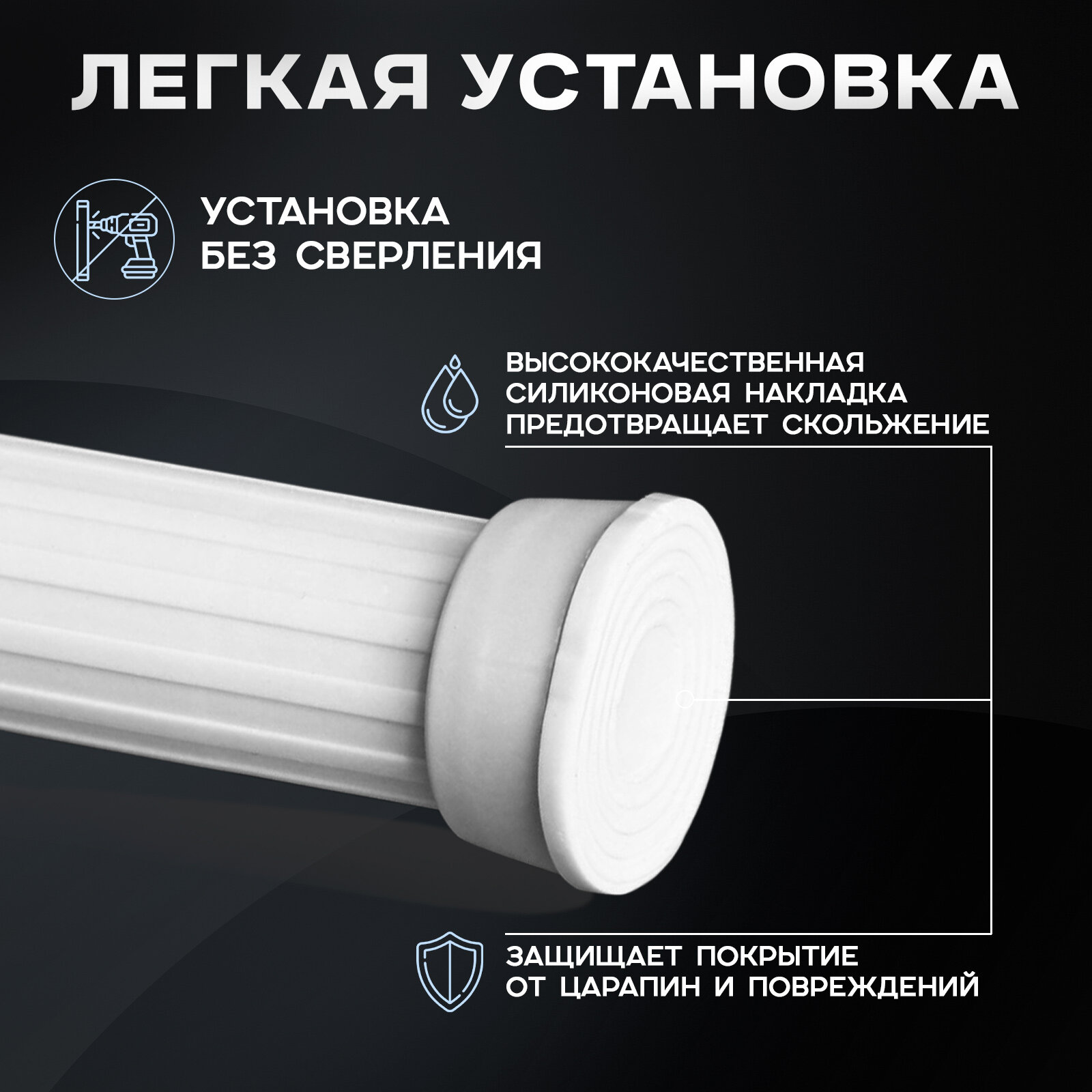 Карниз для ванной комнаты, телескопический, 110-200 см, усиленный, цвет белый