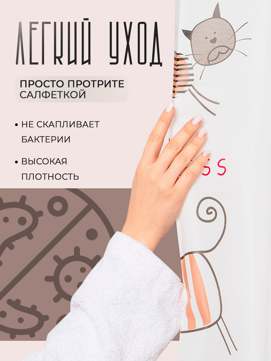 Штора для ванной комнаты с котами Доляна «Коты», 180×180 см, EVA информация: