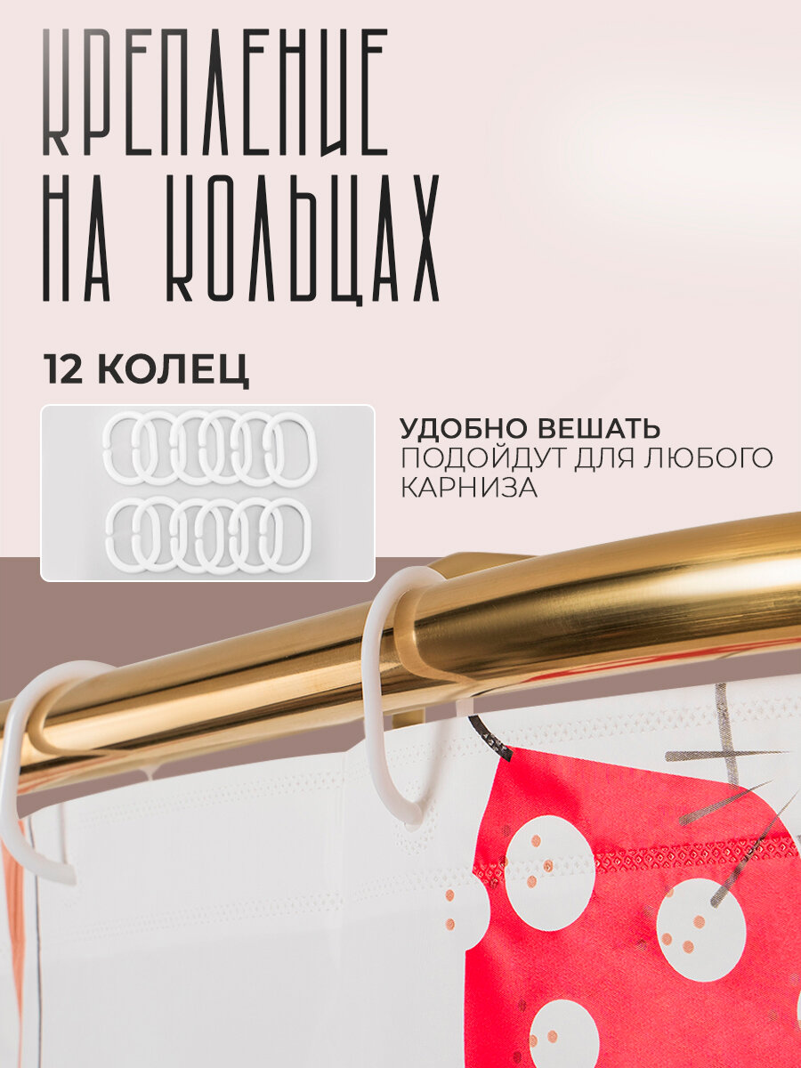 | Подробная комплектация | штора, упаковка, 12 колец–креплений |